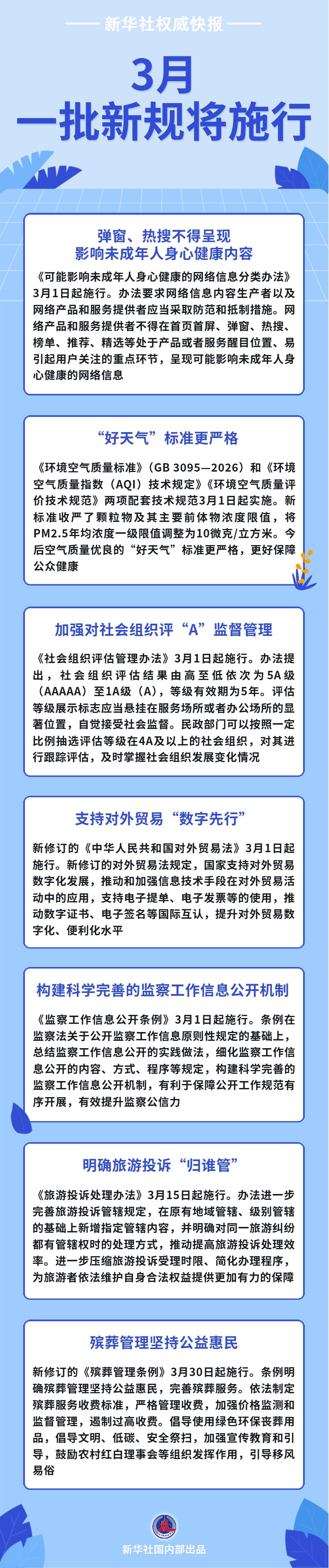 首页首屏、弹窗热搜等不得呈现影响未成年东说念主身心健康的网罗信息;“晴天气”尺度更严格,更好保险公众健康;加强对社会组织评“A”监督管制……3月,澳洲幸运8一批新规将推论,沿途来看!