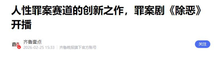 皆鲁壹点:东谈主性罪案赛谈的改进之作,罪案剧《除恶》开播