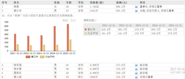 在事迹翻新高的情况下,公司高管薪酬也大宗高潮。其中,轮盘游戏下载公司总裁管江华2025年薪酬为655.3万元,相较于2024年的603.3万元,增长了52万元,为其近五年薪酬的最高水平,在公司高管中仅次于董事长程雪的996.3万元。