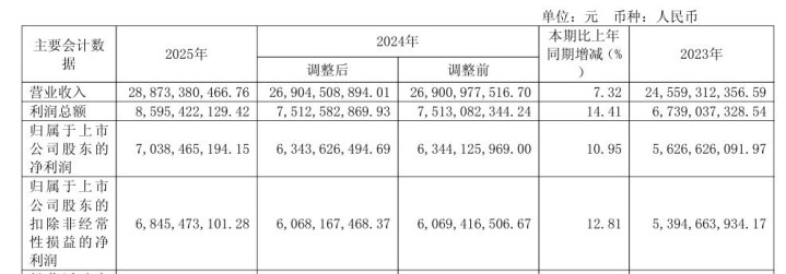 海天味业败露的财报数据暴露,公司2025年交易收入为288.73亿元,同比增长7.32%,其中,调味品主交易务收入为273.99亿元,同比增长9.04%。同期,公司2025年归母净利润同比高潮10.95%至70.38亿元,营收和利润双双增长,且均达到历史最高水平。