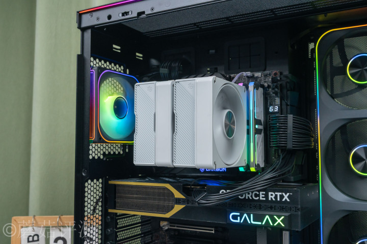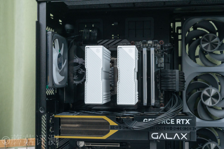 ▼内存兼容性方面,搭配宇瞻的这套ZADAK的这套SPARK内存,轻迫害松,最前边的散热电扇只需要抬一丢丢,险些察觉不到。