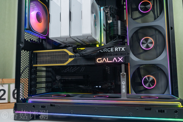 ▼显卡是影驰的RTX 5070魔刃OC,显卡的侧面还有磁吸式的RGB灯板,接济ARGB灯效,接济主板同步。
