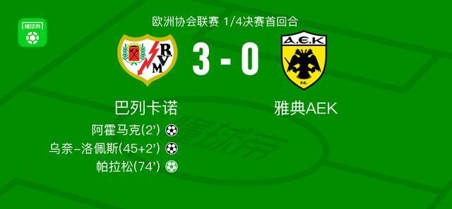 澳洲幸运8 欧协联:巴列卡诺3-0雅典AEK