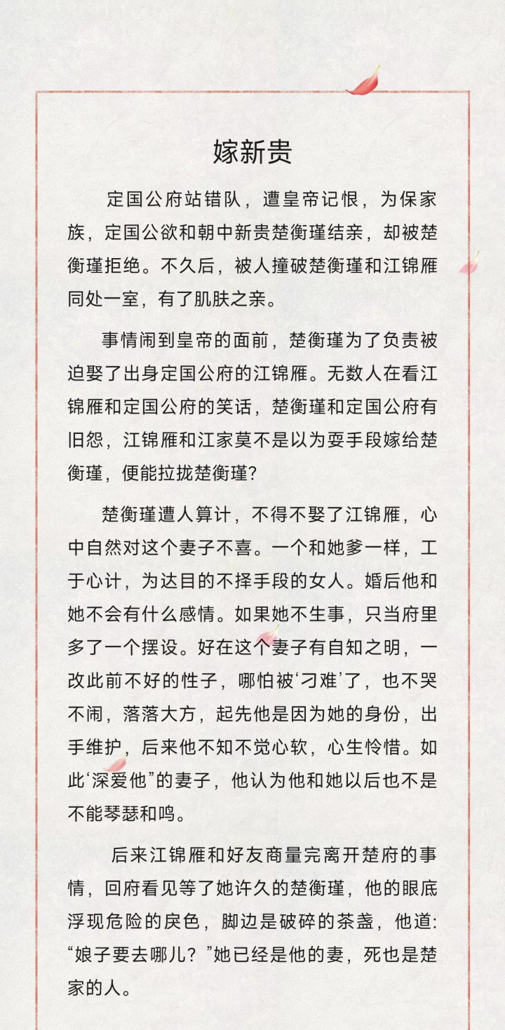 大家好,我是柚子悦推文,今天给大家推荐意己的《嫁新贵》小说,有喜欢的可以点赞收藏分享哦喔~