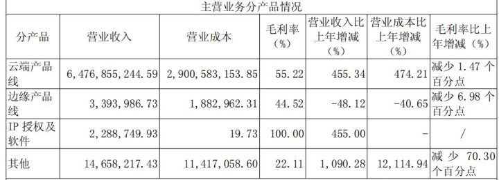 分居品来看,云表居品线是寒武纪的完全收入相沿,2025年收场收入约64.76亿元,同比增长455.34%,占总营收的比重很是99%;边际居品线收场收入约339.39万元;IP授权及软件业求收场收入约228.87万元。