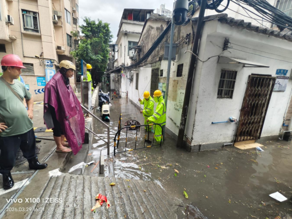 3月29日,荔湾区际遇强对流天气,短手艺聚会强降雨导致中心城区部分低洼路段出现积水内涝,给市民出行与坐蓐生计带来不利影响。濒临突发汛情,龙津街谈第一手艺运转防汛济急预案,合座值守东谈主员、社区责任者、端正队员、环卫保洁东谈主员、济急军队闻“汛”而动、逆行出征,全力开展排涝抢险、隐患排查、巨匠帮扶等责任,在疾风骤雨中书写为民信守的下层担当。