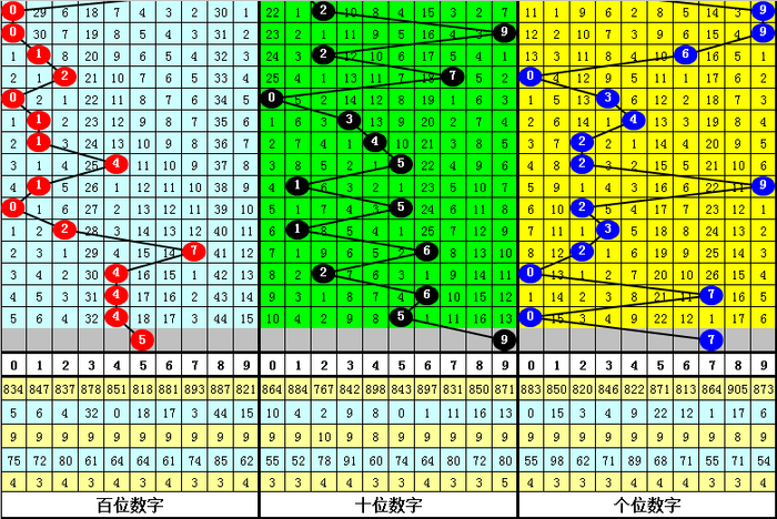 百位推荐:百位最近20期号码012路比为7:10:3,目前0路号码遗漏5期,1路号码遗漏0期,2路号码遗漏4期,另外0-9号码遗漏期数分别为:
