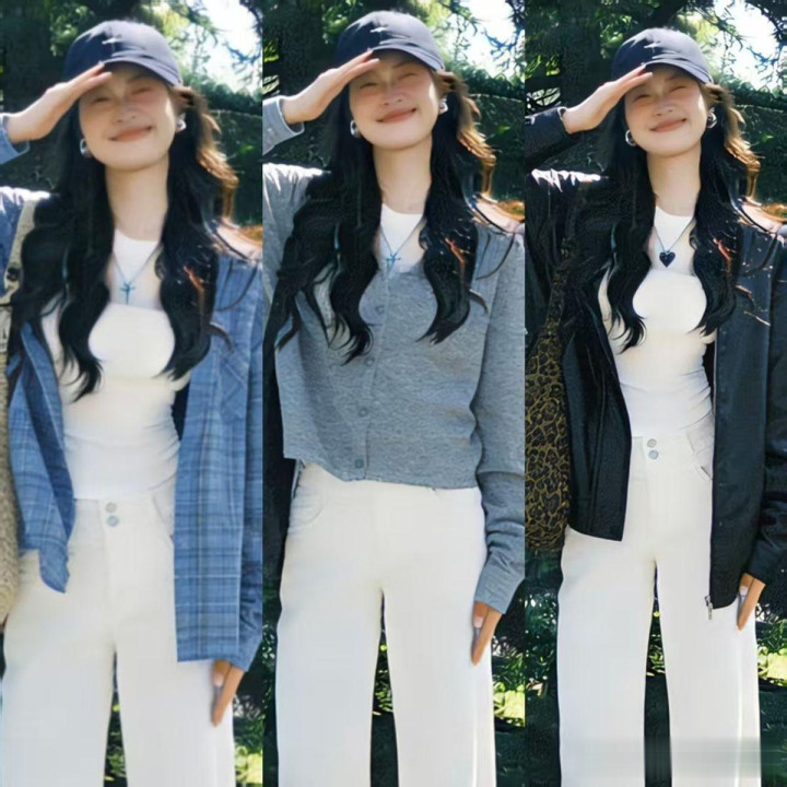 白色的T恤,它等于作为内搭而存在于造型之中,这种服装一般以棉质的面料为主,就算综合略略窄了极少,也不会让东说念主合计有任何不悠然的嗅觉。