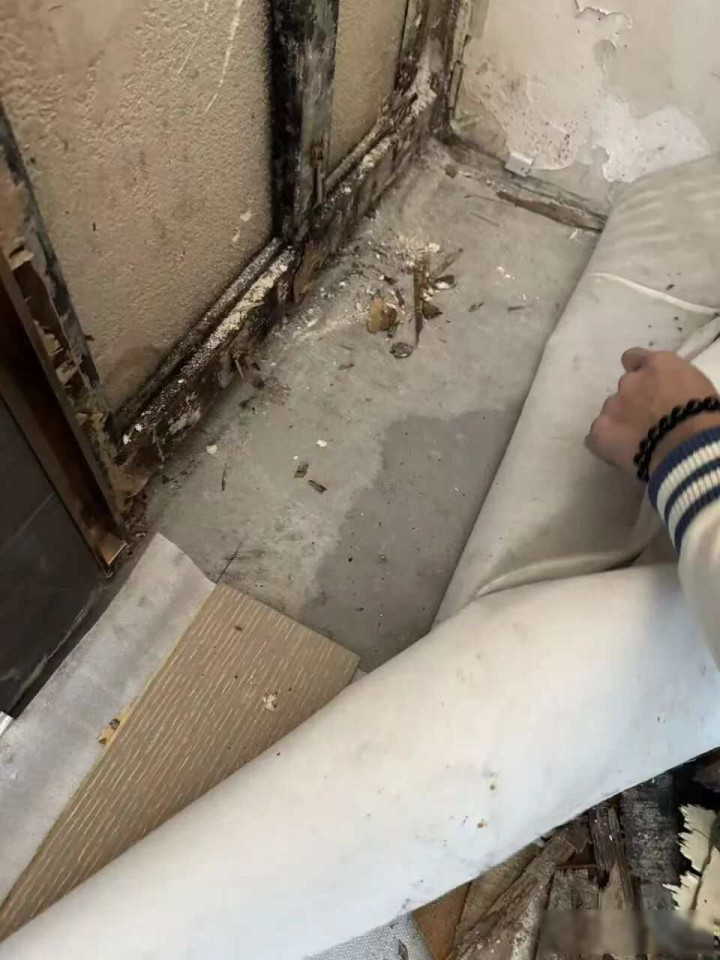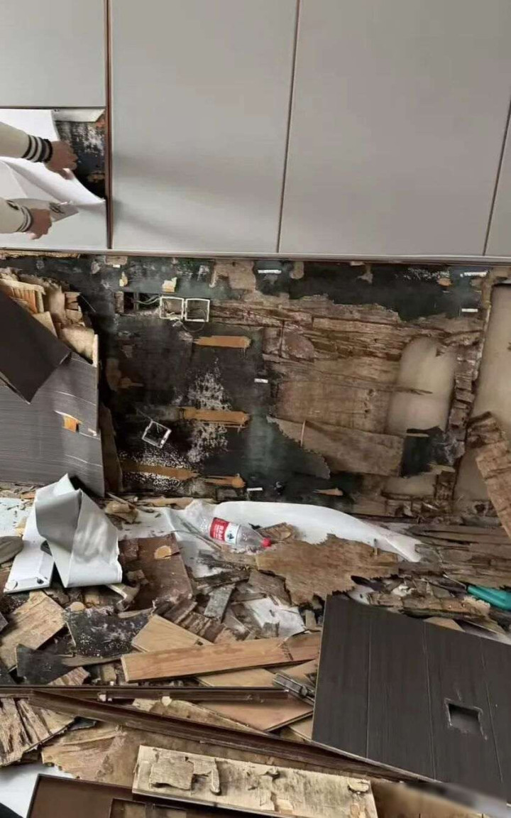 到了2025年7月和9月,这位业主两次巡逻房屋情况,发现主卧墙面含水量显着过高,他找来专科验房师检讨,叙述指出必须重新作念防水处置,效果断绝墙面一看,内部布满玄色霉斑、迂腐的木柴,还有活虫在爬动,这如故不是浮松渗水问题,而是整面墙透顶损坏,建筑商拖到11月初才完成撤废职责,但长久莫得提供书面检测叙述、维修算计或验收文献。