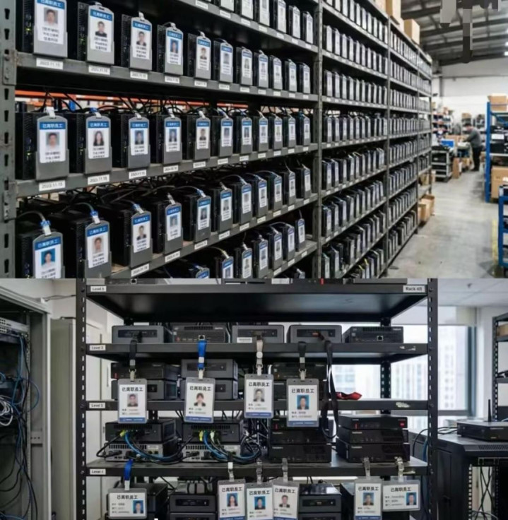 还有网友扔出了AI生成的图片,施行是一个摆满了密密匝匝工作器的机房,每台机器上王人挂着一个工牌,其寓意不言自明。
