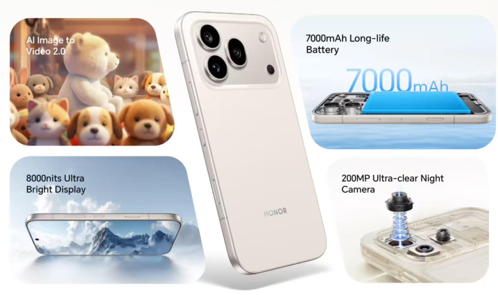 这次沙特阿拉伯官网则放出了具体的参数竖立信息,如图荣耀600与荣耀600 Pro中枢硬件区分不大,7000mAh大电板、2亿像素主摄、8000nit OLED露馅屏、AI Image to Video 2.0能确保闲居续航、影像、影音文娱使用需求。