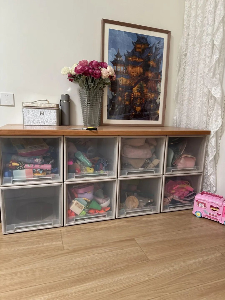 而况她还买了几个大号箱子,放客厅收纳孩子的玩物。孩子玩罢了我方往里一扔,关上盖子,家里一刹整洁如新。