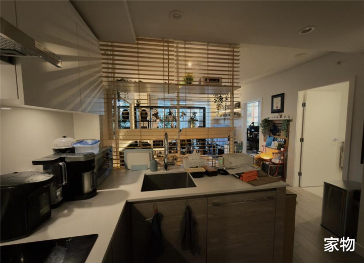 站在厨房里,也能看到刚才说到的百叶窗,完美分隔了厨房和面前的卧室,不会让家居生活区域混淆,也算是低成本改造的典范案例了。