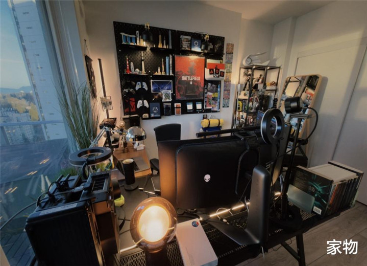 电脑桌设计成半包围式格局,面前屏幕足够大,旁边采光足够强,甚至还有一个放笔记本的地方,无论是办公还是玩游戏,效率都很高。