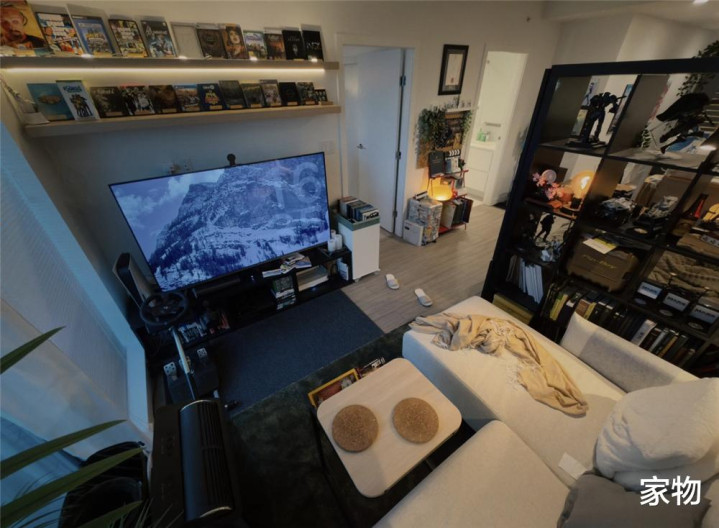 对于他来说,电视的存在除了看电影,更多时候会用来打游戏,干脆就把电视墙布置成了游戏墙。