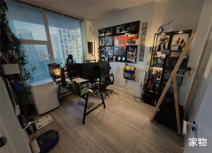 但最近,我却发现了一位24岁男生的家(@鳄宇宙),因为太想要一间电竞书房,只好将床搬到了客厅里,将卧室让出来,改造成了独立的电竞房。