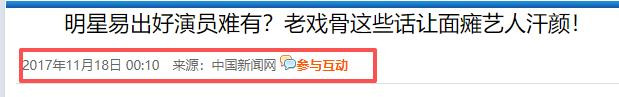 中国新闻网2017-11-18《明星易出好演员难有?老戏骨这些话让面瘫艺东谈主汗颜!》