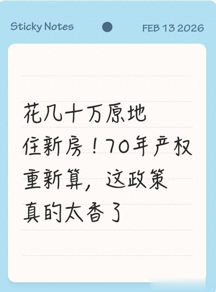 2026年是原拆原建全面落地的关键一年,国度从“大拆大建”转向“存量提质”,长幼区业主终于比及了最实在的福利。花几十万,原地住新址,70年产权从头算,无用搬家、无用背贷、地段不变、财富更稳,这样的战术,真的太香了。