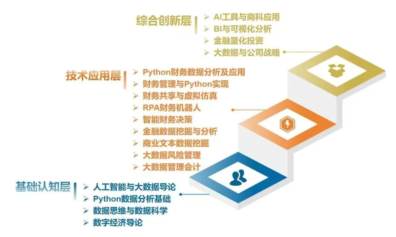 ①课程:酿成层层递进、本性光显的“AI+商科”课程体系,基础层树立通识课,技能应用层树立专科交融课,空洞改换层树立培养学生空洞诈骗AI器具科罚商科问题才智的课程。